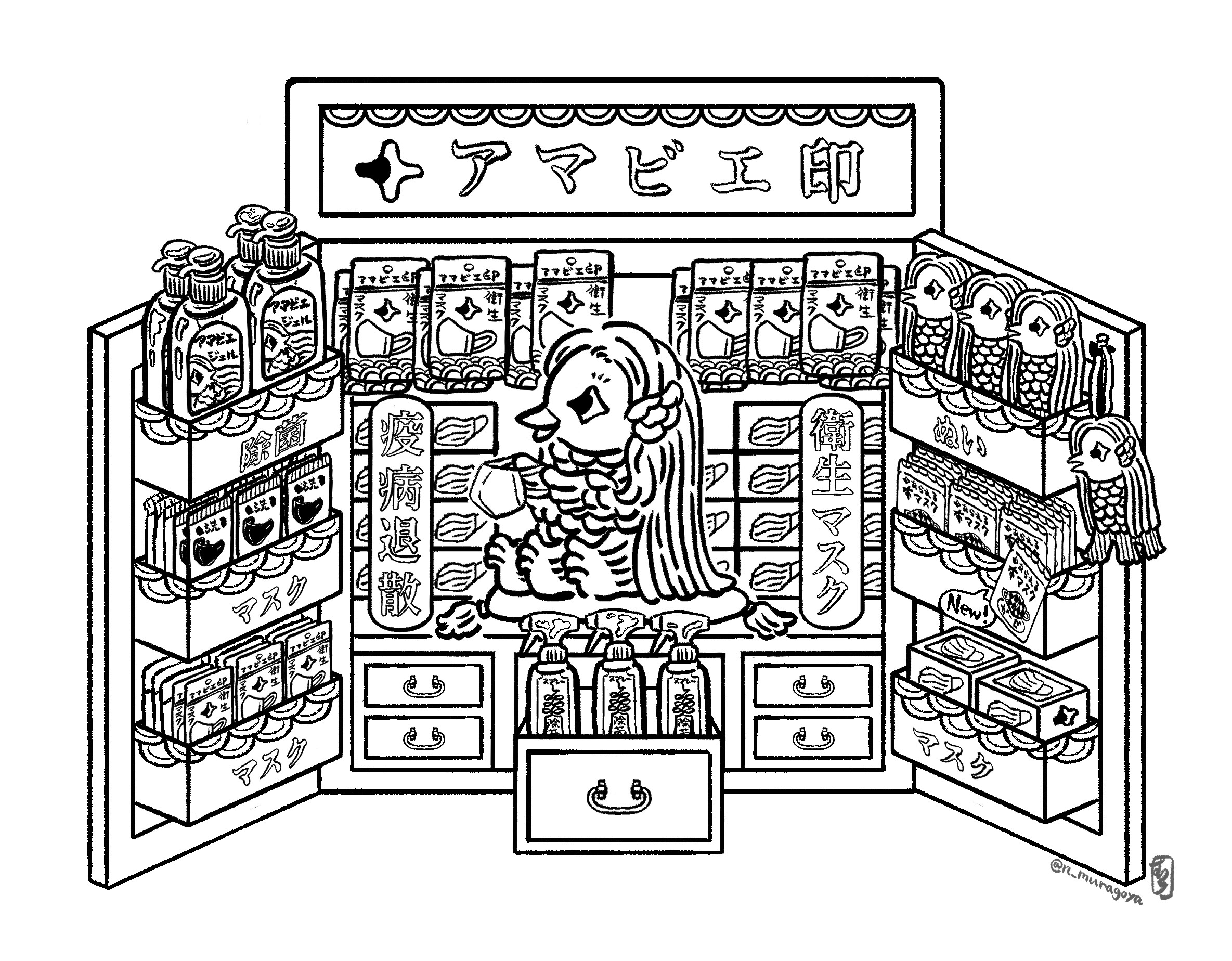 - 中村杏子さん アマビエぬり絵ダウンロード